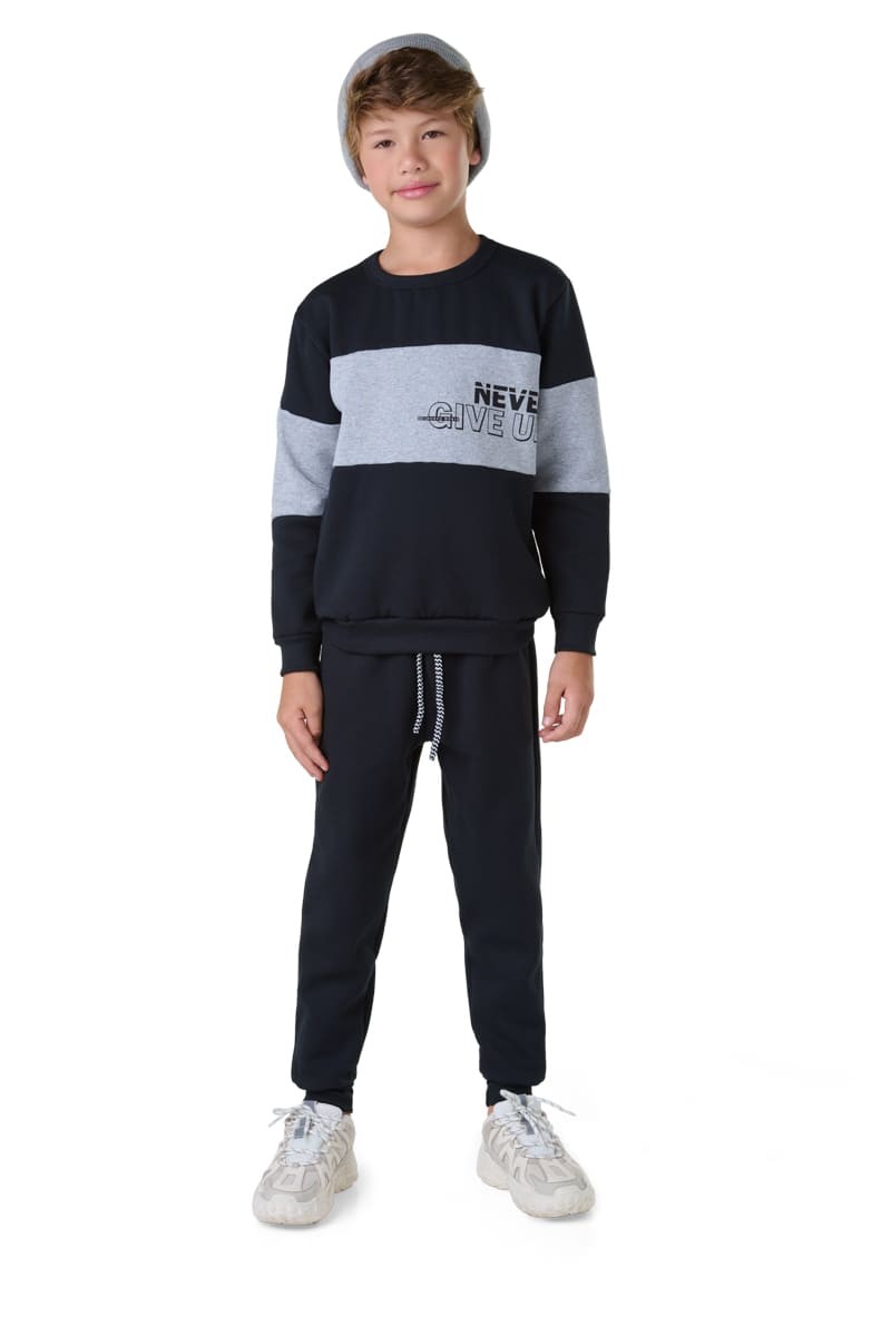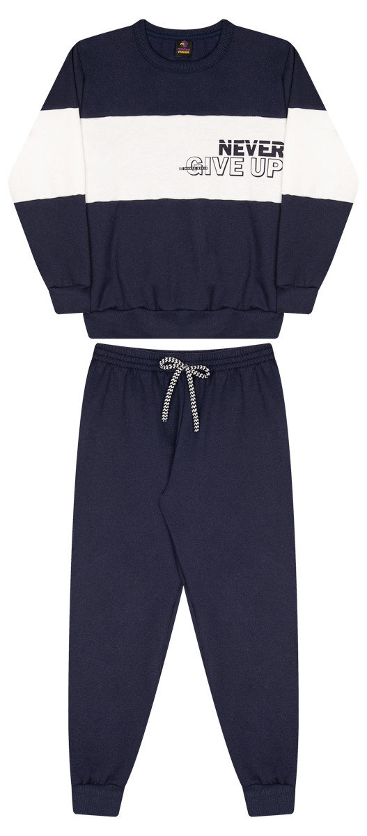 AdicionarEste conjunto é ideal para quem busca peças com acabamento diferenciado. O blusão com recortes e reforço oferece visual estruturado e moderno, enquanto a calça com punho e cordão complementa com conforto. As cores marinho e preto são clássicas e versáteis, tornando a peça uma excelente aposta para revendedores que valorizam estilo com qualidade.
